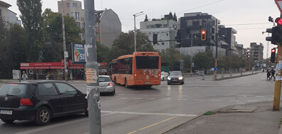 Нагъл шофьор на автобус 107 мина през трамвайните…
